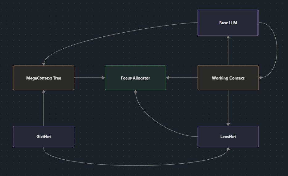 - Compression: GistNet → feeds MegaContext Tree hierarchy (see POC Architecture).